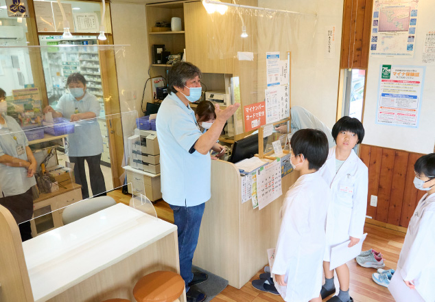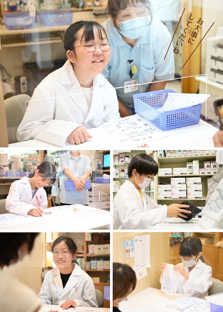 実際に使用している分包機でお薬を作ったよ。お薬の説明をしてお母さんに上手にわたせたね。