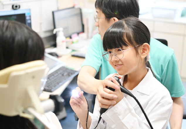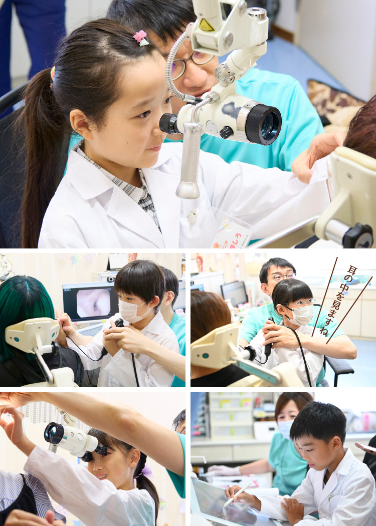 診察にも使う機械で先生になりきってお母さんの耳の中をみたよ。